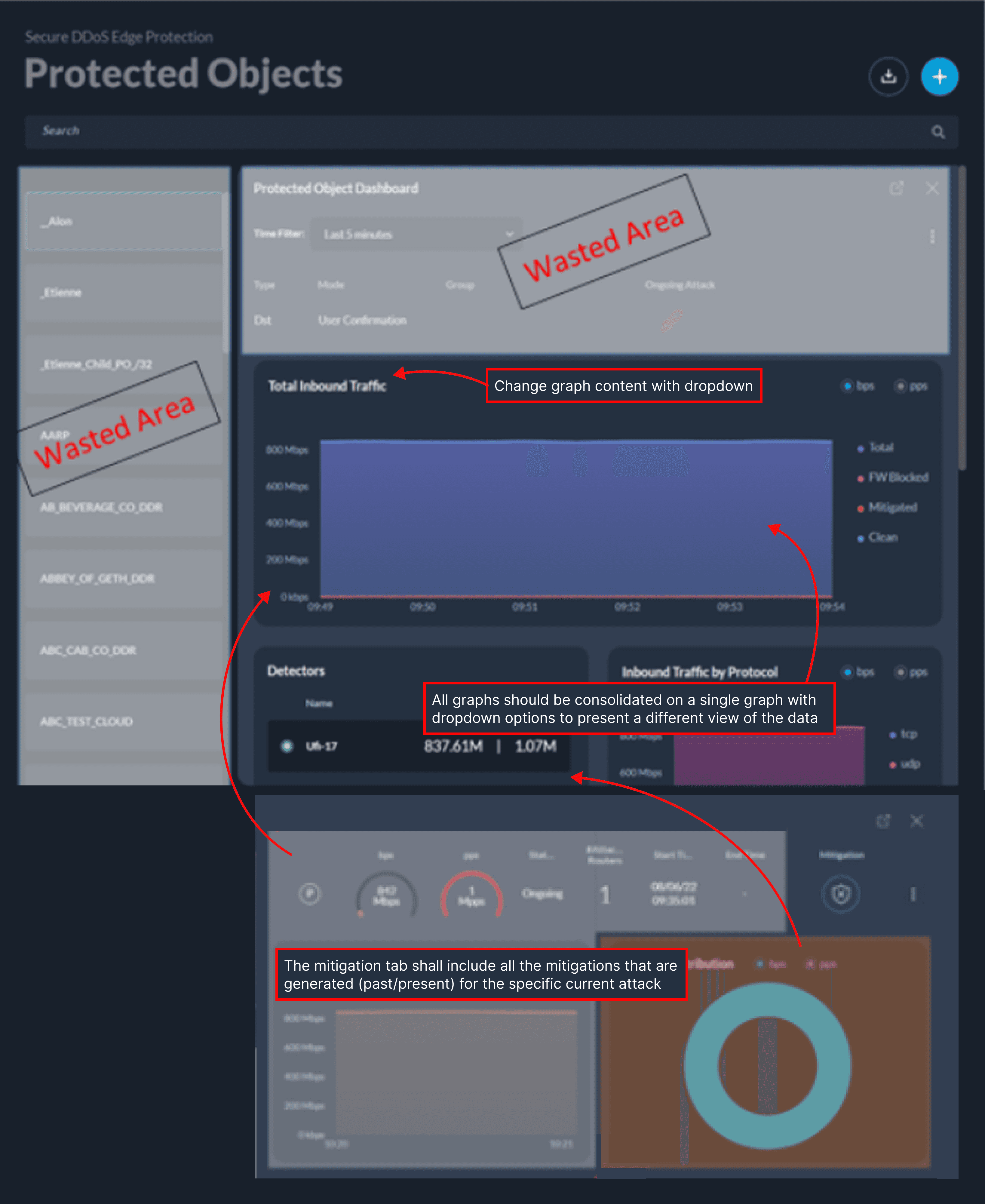 Edge Protect was designed to manage and protect network infrastructures (Protected Objects) for large enterprise NOC and IT teams. The original system was built years ago without a clear information hierarchy, design system, or cohesive user experience.